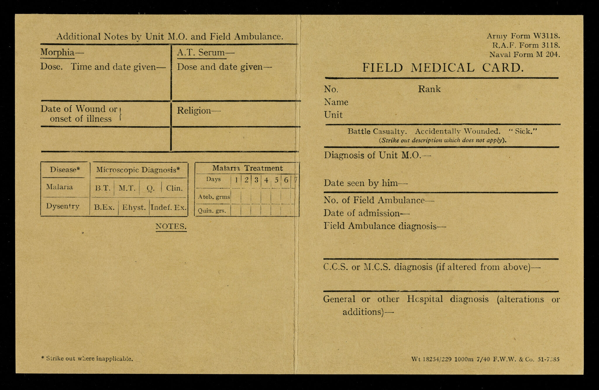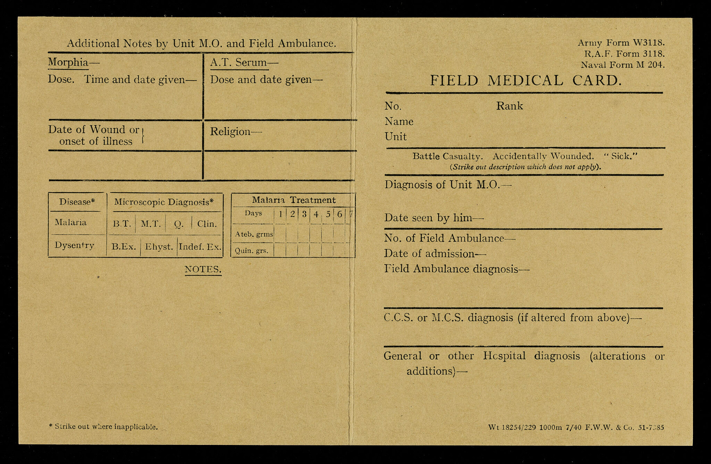 Field medical card / [War Office]. Source: Wellcome Collection.